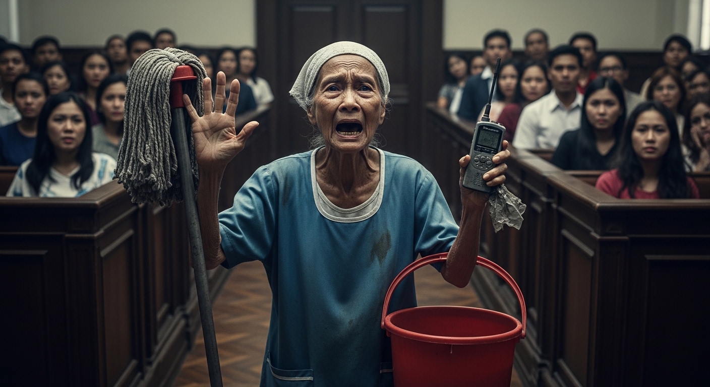 2 MINUTO BAGO ANG HABAMBUHAY NA PAGKAKAKULONG… ISANG JANITRESS ANG TUMAYO SA HARAP NG 200 TAO AT INILABAS ANG EBIDENSYANG NAKATAGO SA LOOB NG BASURAHAN NG C.R.