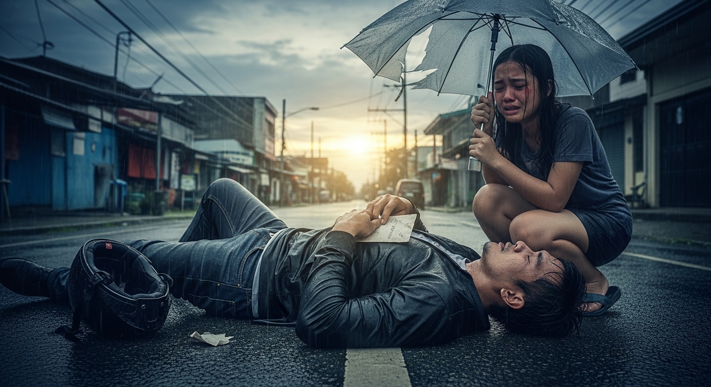 Si Rodel, nakahandusay sa gitna ng ulan,