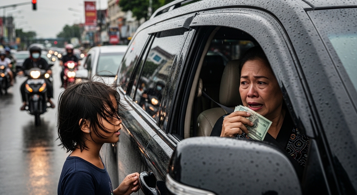 Biglang may kumatok sa bintana ng kanyang sasakyan. Isang batang babae, nasa 10 taong gulang, gusgusin, at may hawak na mga sampaguita.