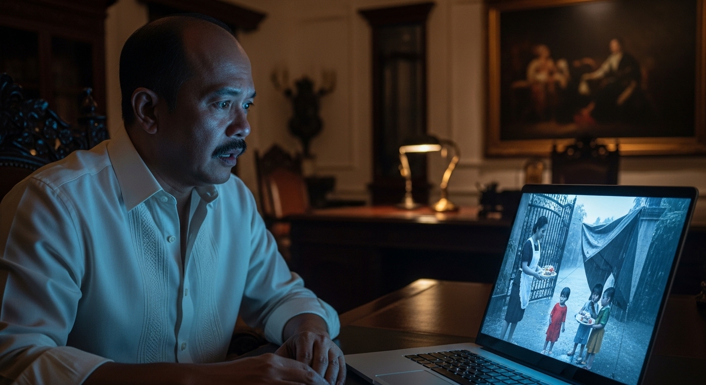 Ipinakita niya ang video—si Maria sa ulan, hawak ang bag ng pagkain, pinapakain ang mga bata.