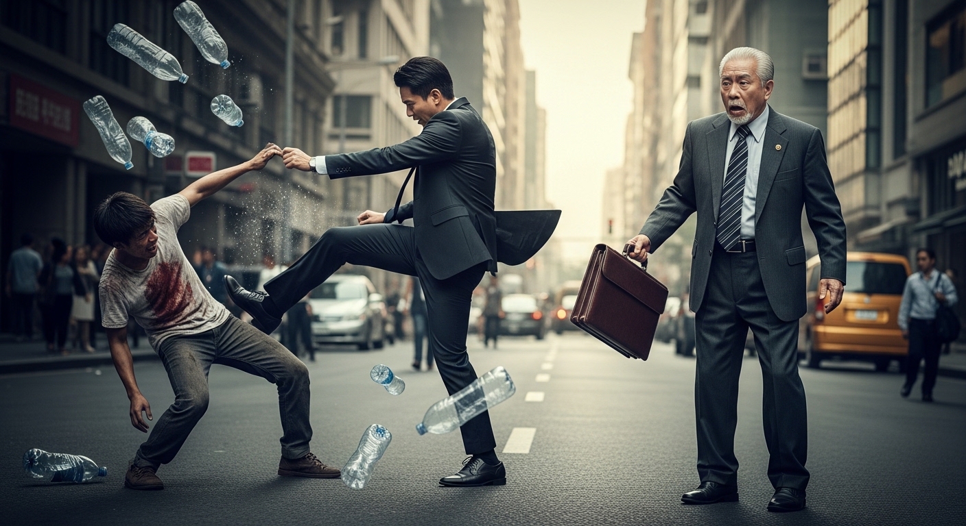 Biglang may tumakbong isang batang basurero, nasa 14-anyos, payat, madungis, at may bitbit na sako ng mga bote. Natabig ng bata ang sapatos ni Roman.