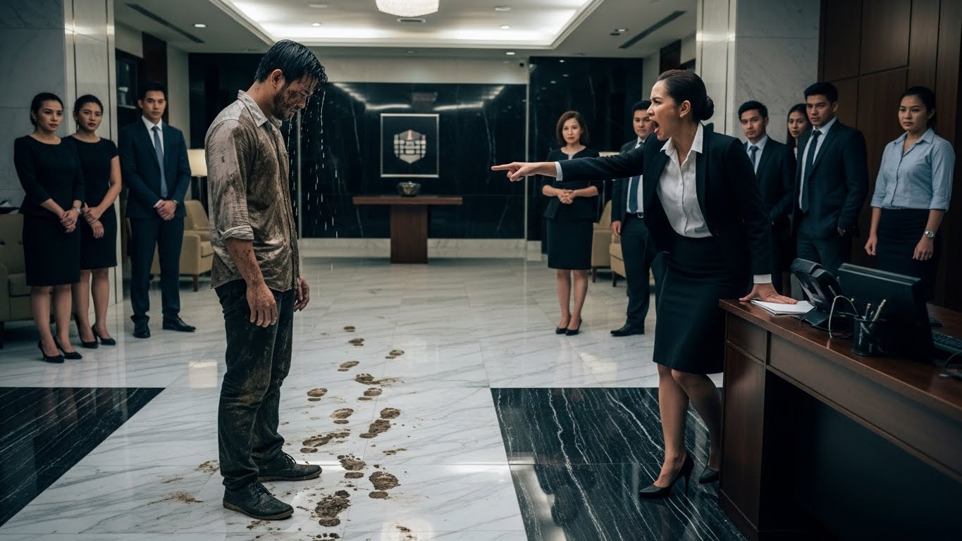 BASANG-BASA AT PUNO NG PUTIK NA DUMATING ANG APLIKANTE DAHIL TUMULONG SIYA SA NASIRAAN NG KOTSE — PINALAYAS SIYA NG HR MANAGER, PERO NATIGILAN ANG LAHAT NANG YUMAKAP SA KANYA ANG CEO AT SABIHING “HIRED KA NA!”