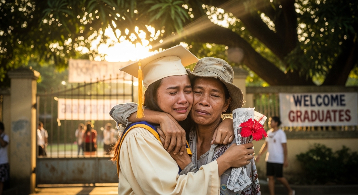 “HINDI KAILANMAN DUMALO SI MAMA SA MGA GRADUATION KO — PERO NOONG ARAW NA ITO, NAKITA KO SIYA SA LABAS NG GATE, HAWAK ANG ISANG BULAKLAK NA BALOT SA LUMANG DYARYO.”