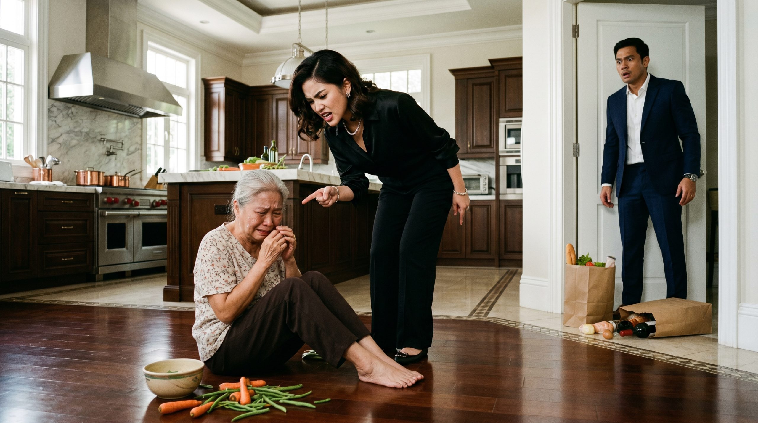 Nakaluhod sa malamig na sahig ang aking animnapung-taong-gulang na ina. Nanginginig siya habang pilit na pinupulot ang mga natapong gulay. Sa kanyang harapan, nakatayo si Stella, nakapamaywang at tinitingnan ang aking ina nang may matinding pandidiri.