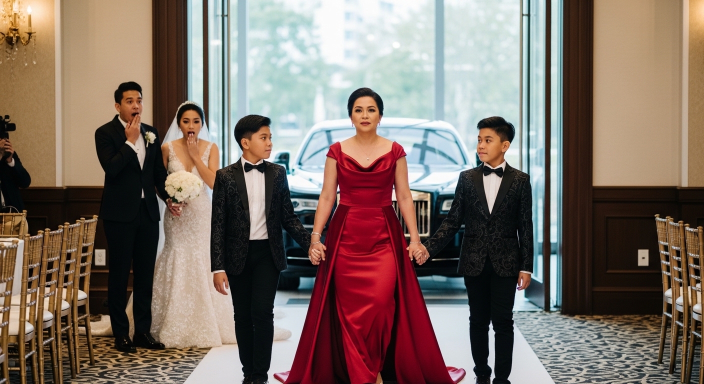 At sa gitna nila, bumaba ako. Suot ko ang isang custom-made na Crimson Red Silk Gown na nagkakahalaga ng milyun-milyon. Sa magkabilang kamay ko ay ang aking kambal, sina Leo at Leia, na nakasuot ng maliliit na designer suits at dresses na parang mga tunay na dugong bughaw.