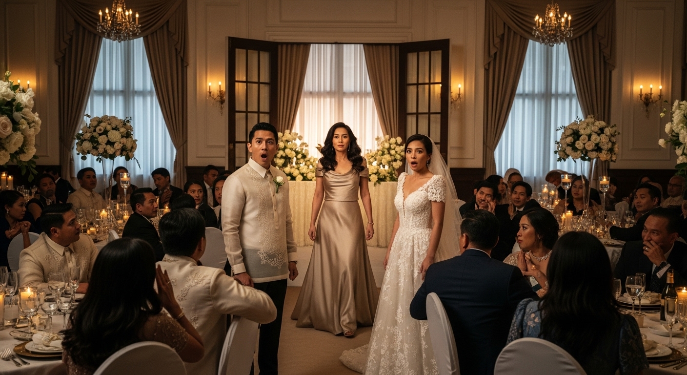 Ang venue: isang marangyang hotel ballroom sa Maynila, may mamahaling bulaklak, chandelier, at mga bisitang pawang mga negosyante at mayayaman.