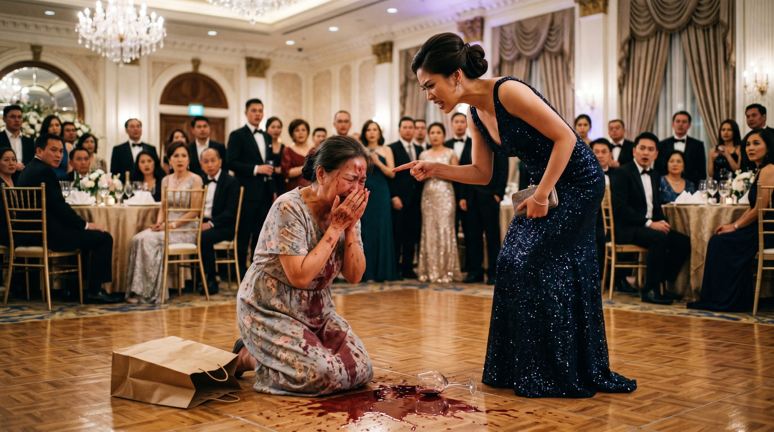 Napasinghap ang mga bisitang nakatingin. Basang-basa ng pulang alak ang mukha ng matanda, tumutulo sa kanyang puting buhok at sa lumang paper bag na hawak niya. Umiyak siya nang tahimik sa matinding kahihiyan.