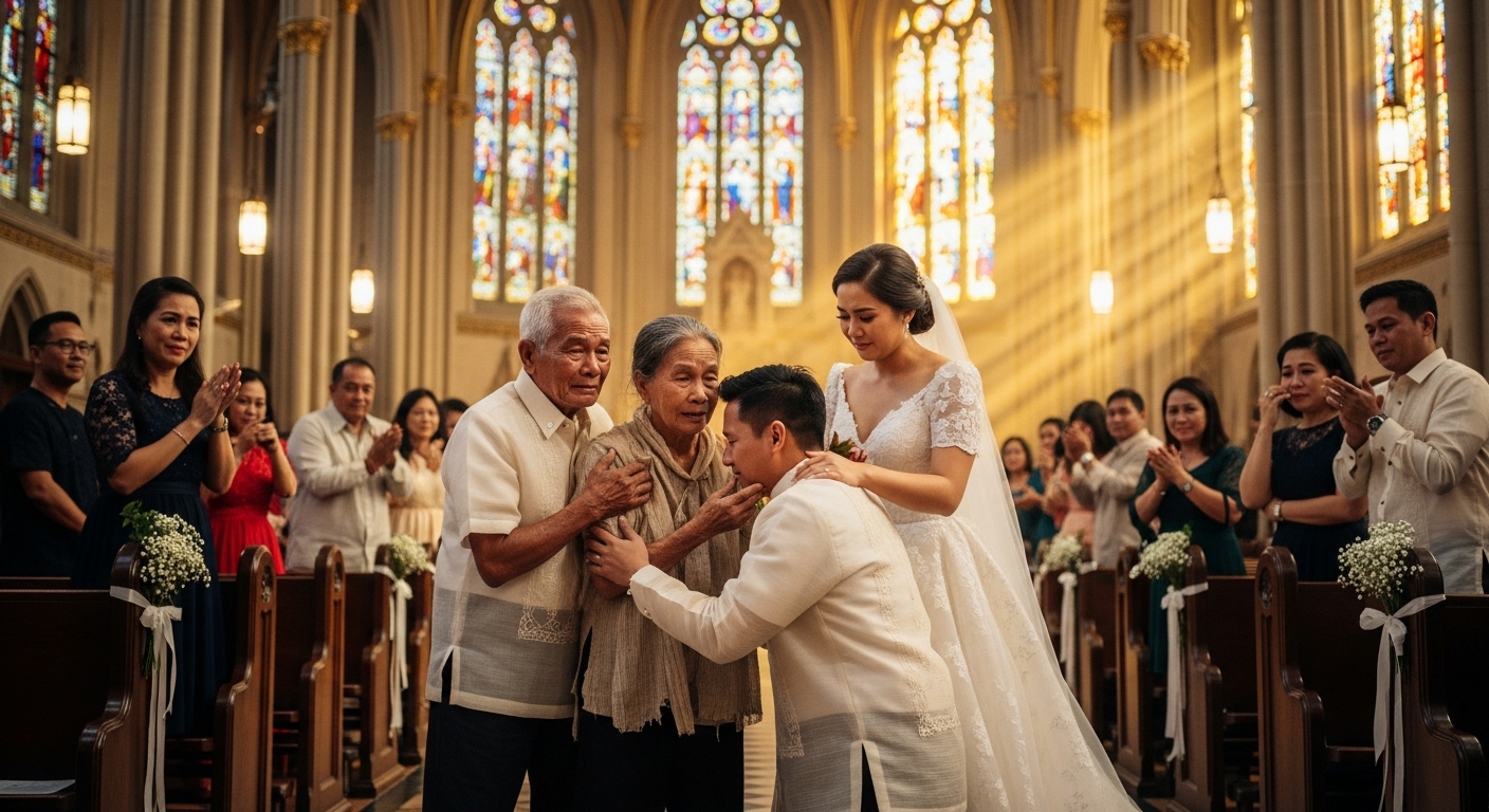 Matapos ang kasal, dinala ni Rico ang kanyang mga magulang sa harap ng lahat ng bisita.