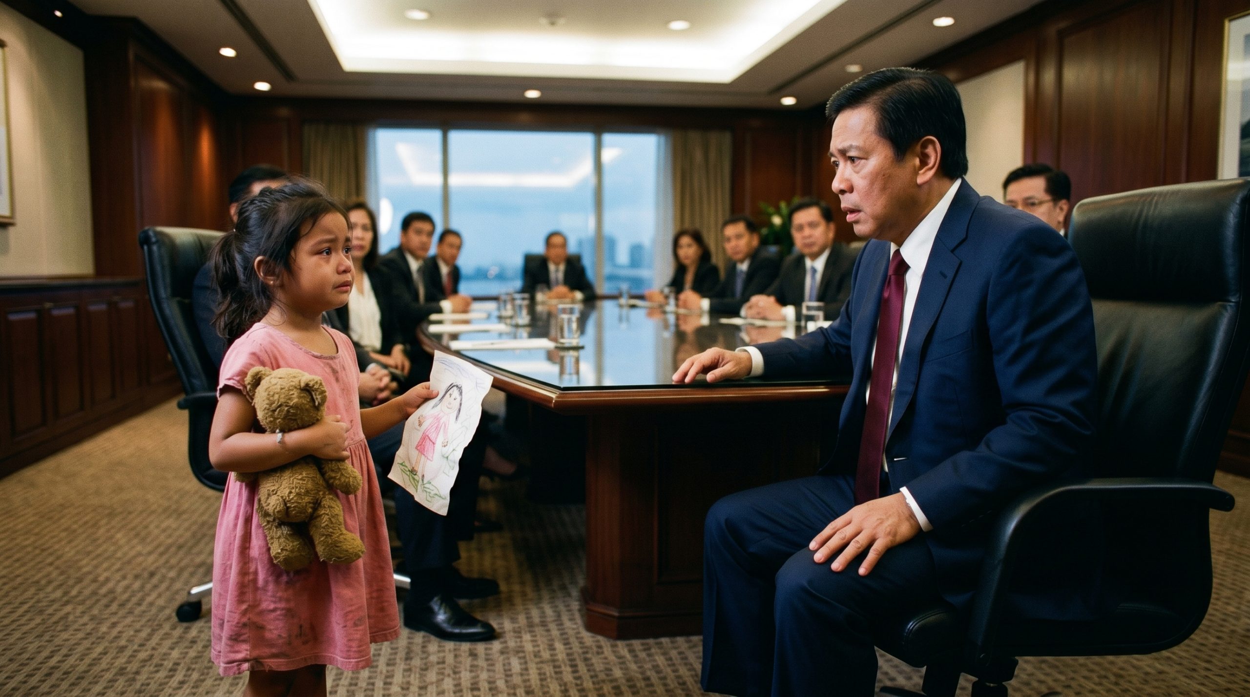 “Kayo po ba yung boss?” inosenteng tanong ng bata, ang kanyang matinis at nanginginig na boses ay umalingawngaw sa buong tahimik na boardroom.