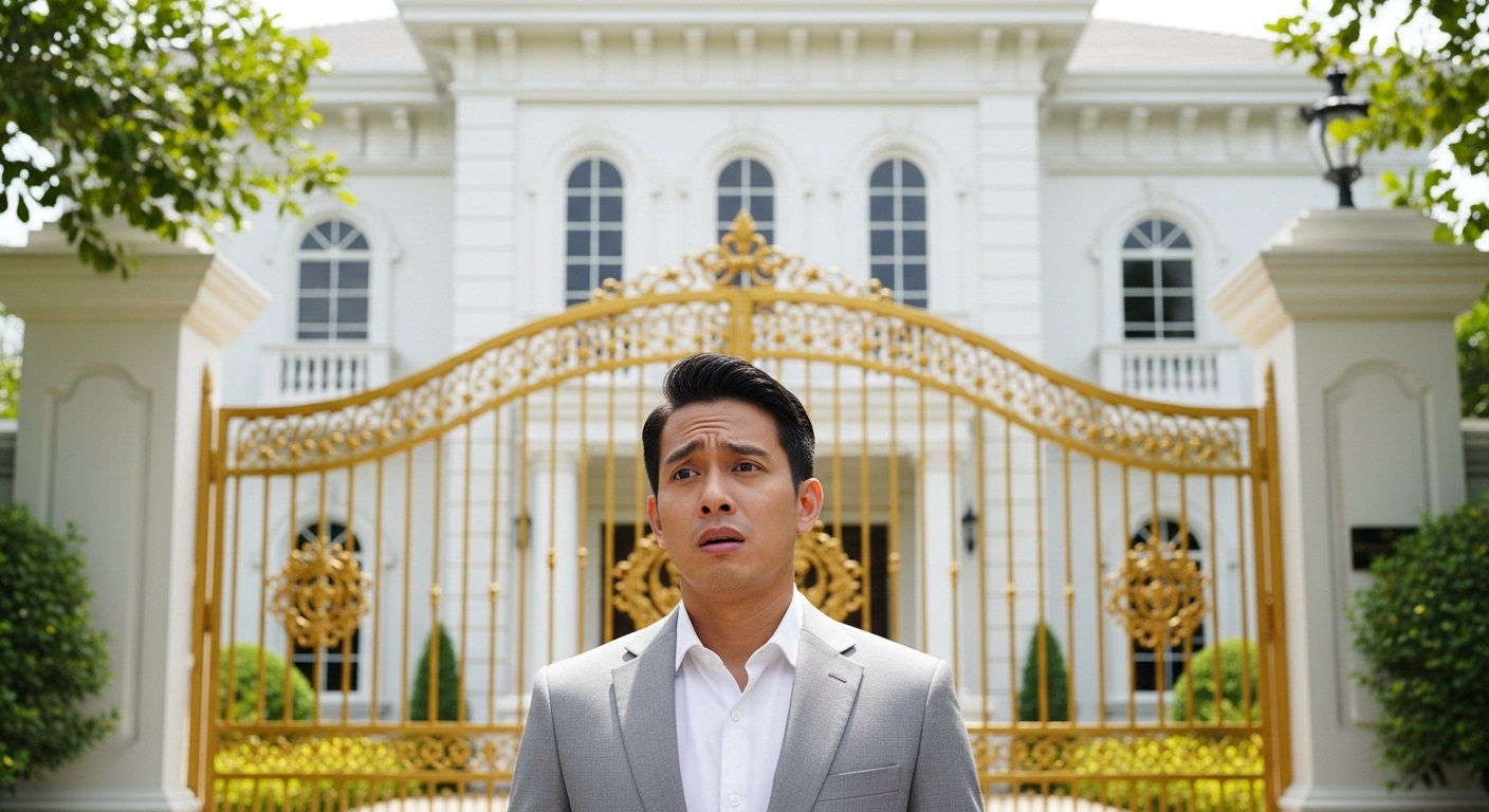 Huminto ang taxi sa tapat ng isang napakagandang mansion. Kulay puti, may gate na ginto, at may fountain pa.