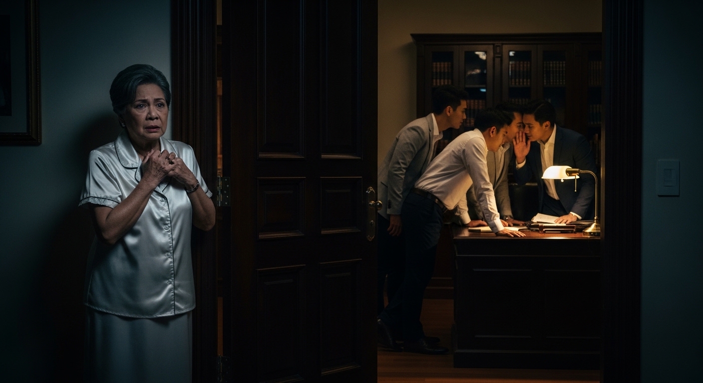 Alas-dos ng madaling araw, nagising ako para umihi. Habang naglalakad ako pabalik sa kwarto ko, napadaan ako sa library. Bukas ang siwang ng pinto at may mahinang ilaw. Narinig ko ang boses ng tatlo kong manugang—sina Marco, Paulo, at Dennis.