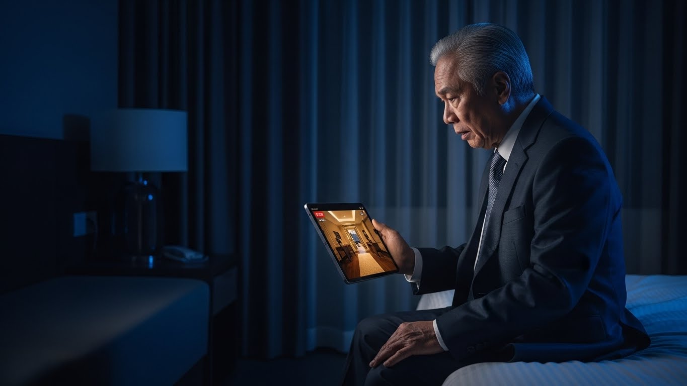 Sa halip, binuksan ko ang mga camera mula sa hotel room.
