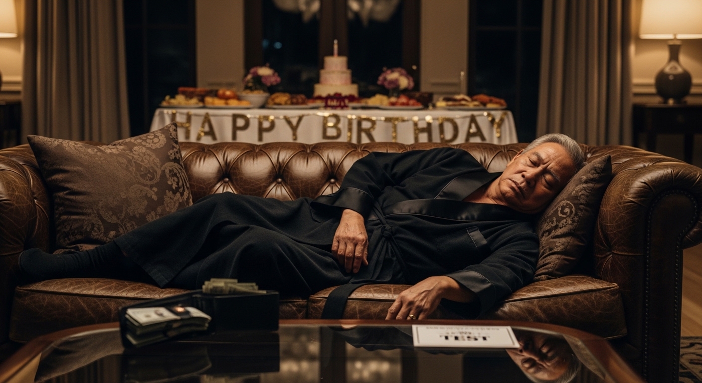 Ngayon ang aking ika-pitumpung kaarawan. Naghanda ako ng isang malaking salu-salo, umaasang darating ang aking tatlong anak na pawang mga matagumpay na rin at may sariling mga negosyo. Ngunit lumipas ang buong maghapon, walang ni isang anak ko ang dumating. Isang malamig na text message lang ang nakuha ko mula sa aking panganay: “Happy Bday Dad. Busy sa opisina. Send na lang ako ng gift.”