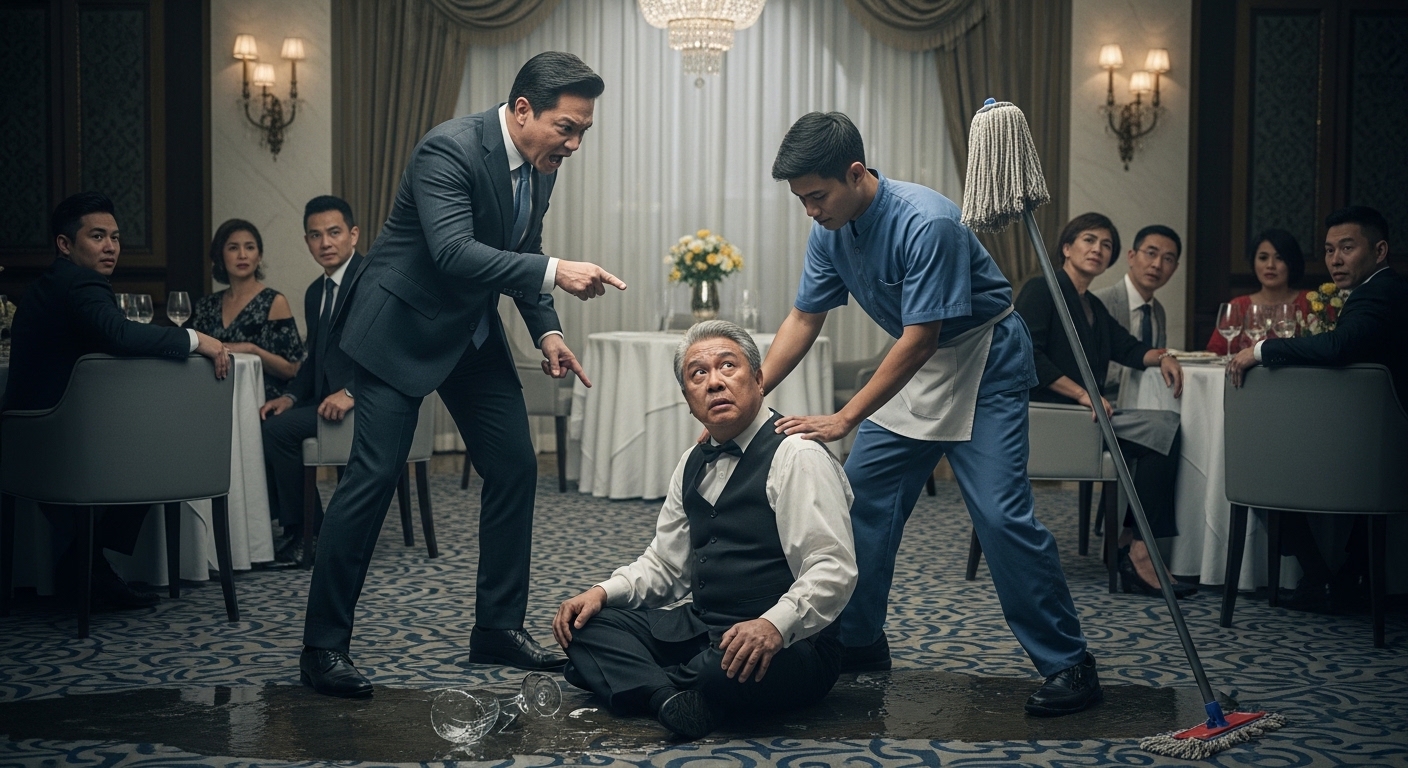 “Sir Vergara, tama na po!” sigaw ni Leo habang ginagawang harang ang sarili sa pagitan ng manager at ng matanda. Niyakap niya si Don Roberto para protektahan ito. “Matanda na po siya! Ako na po ang maglilinis! Ibawas niyo na lang po sa sahod ko ang basag na baso, parang awa niyo na!”