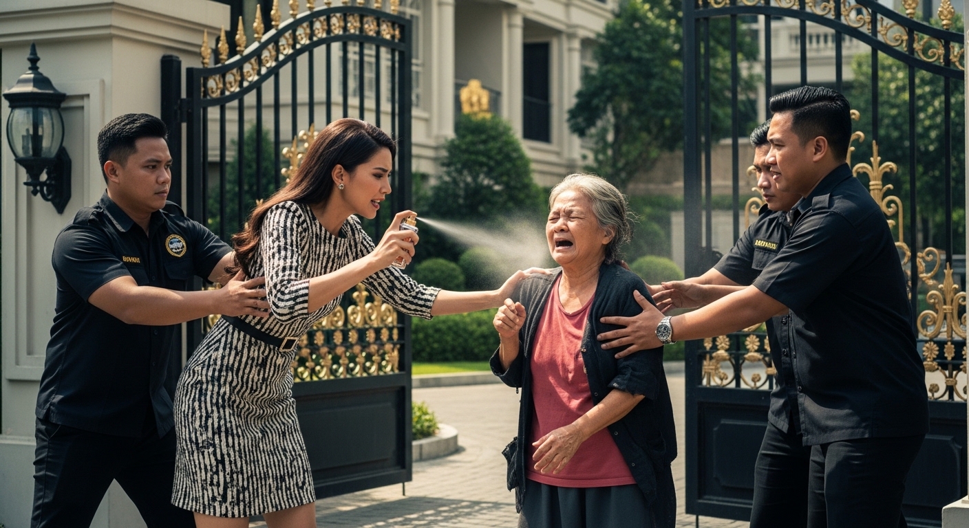 Tinulak ng guard si Victoria palayo sa gate. Napaupo ang matanda sa semento, ramdam ang sakit hindi lang sa katawan kundi sa puso dahil sa ugali ng kanyang manugang.