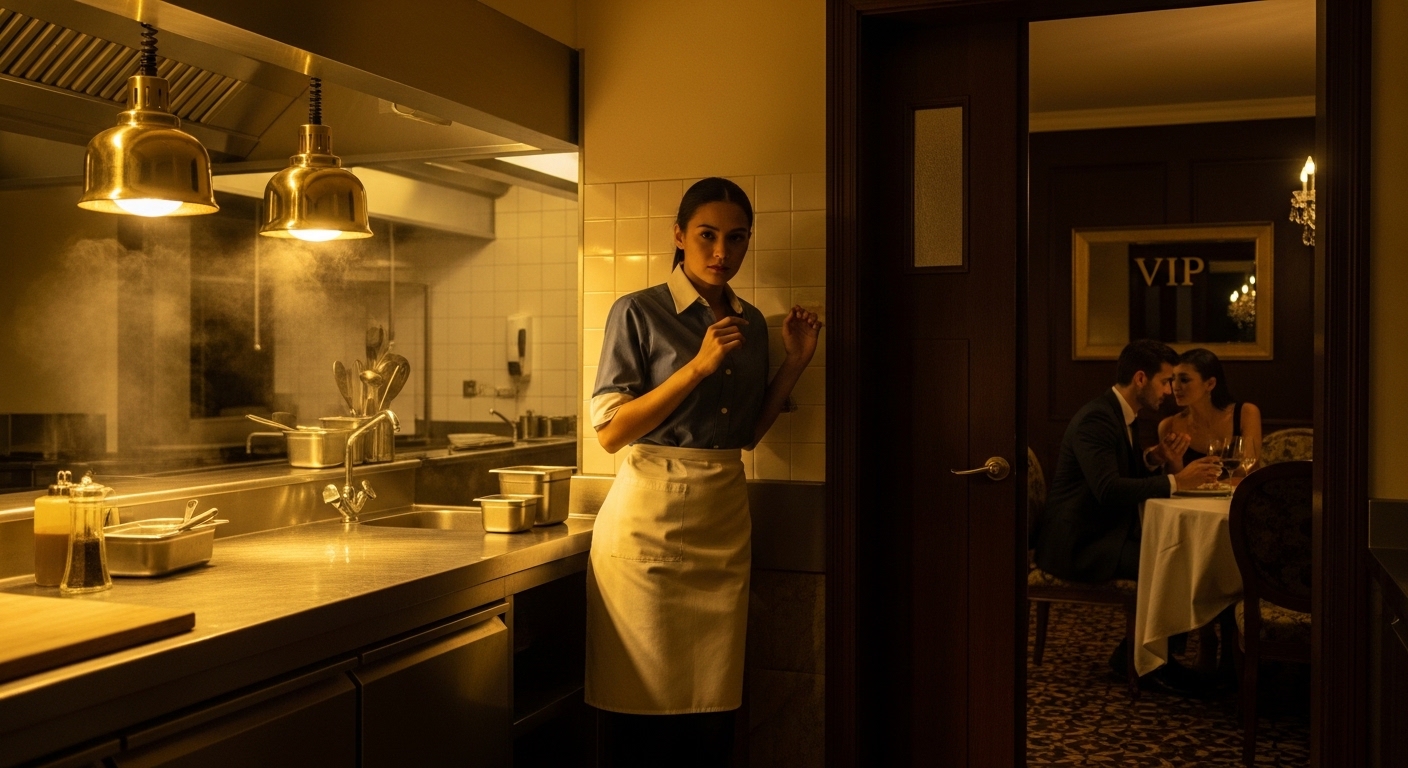 Sa kusina, hirap na hirap si Sophia. Hindi siya sanay sa gawaing bahay. Pero tiniis niya ang init at pagod para makasilip sa dining area.