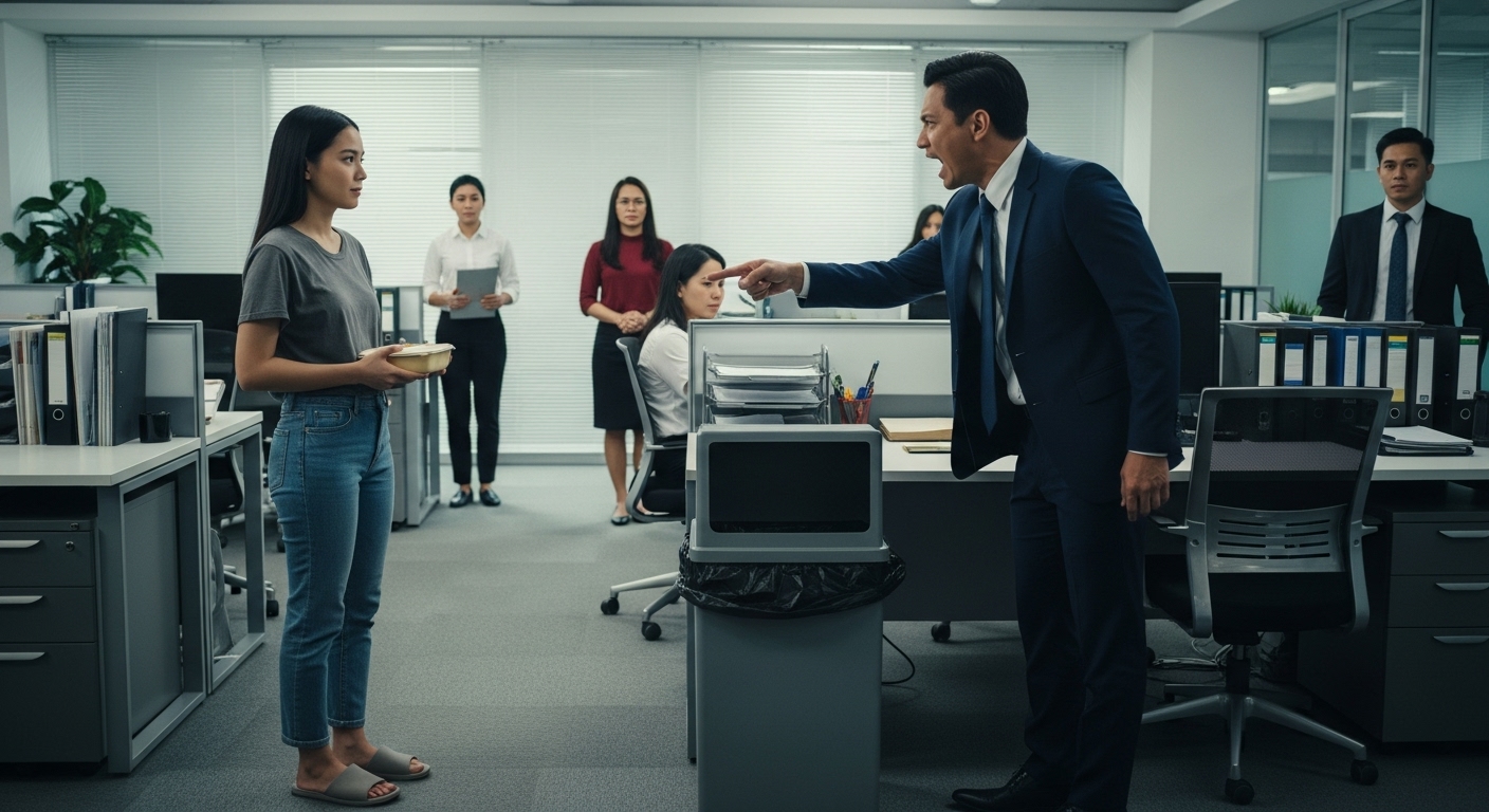 “Lunch?!” hinablot ni Kevin ang tupperware at tinapon ito sa basurahan. “Hindi ko kailangan ng mumurahin mong luto! Nakakahiya ka sa mga empleyado ko!”