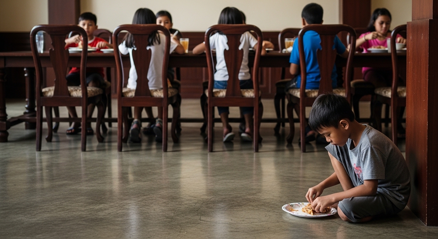 Ang lahat ng mga pamangkin ni Anton—ang mga paboritong apo ni Doña Matilda—ay nakaupo sa malambot at magagarang silya sa paligid ng mesa. Kumakain sila sa mga porselanang plato. Ngunit ang anak kong si Leo ay nakaupo sa malamig na sahig sa may sulok, malapit sa basurahan. Nakayuko siya, pilit na hinihiwa ang piraso ng karne gamit ang isang manipis na paper plate na muntik nang matapon sa sahig.