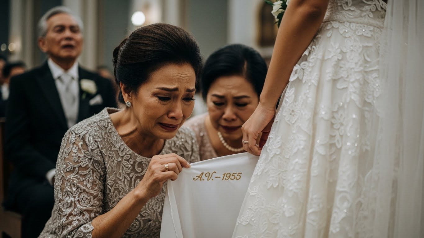 Binaliktad ni Donya Cecilia ang laylayan ng gown. Ipinakita niya ang isang maliit na burda sa loob ng tela.
