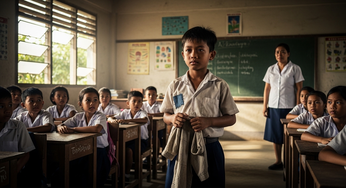 “PINAGTAWANAN NG MGA KAKLASE ANG BATA DAHIL SA LUMANG DAMIT NIYA — PERO NANG MAGSALITA SIYA SA HARAP NG KLASE, LAHAT SILA NATAHIMIK AT NAPAIYAK.”