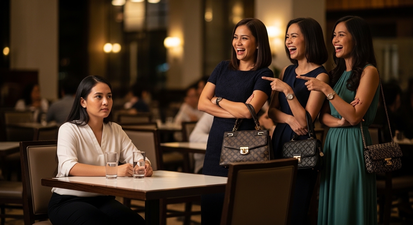 Tahimik lang akong nakaupo sa sulok, umiinom ng juice. Suot ko ang isang simpleng puting blouse at slacks. Walang masyadong alahas. Walang designer bag.