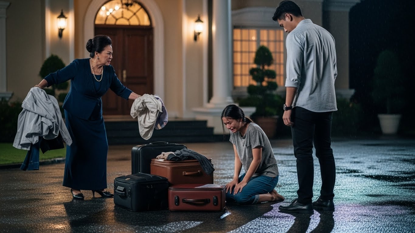 “Angeline!” sigaw ni Donya Miranda habang tinatapon ang mga damit ni Angeline sa labas ng mansyon. “Layasan mo ang pamamahay ko! Wala kang silbi! Baog ka na nga, mahirap ka pa! Sinisira mo ang image ng pamilya namin!”