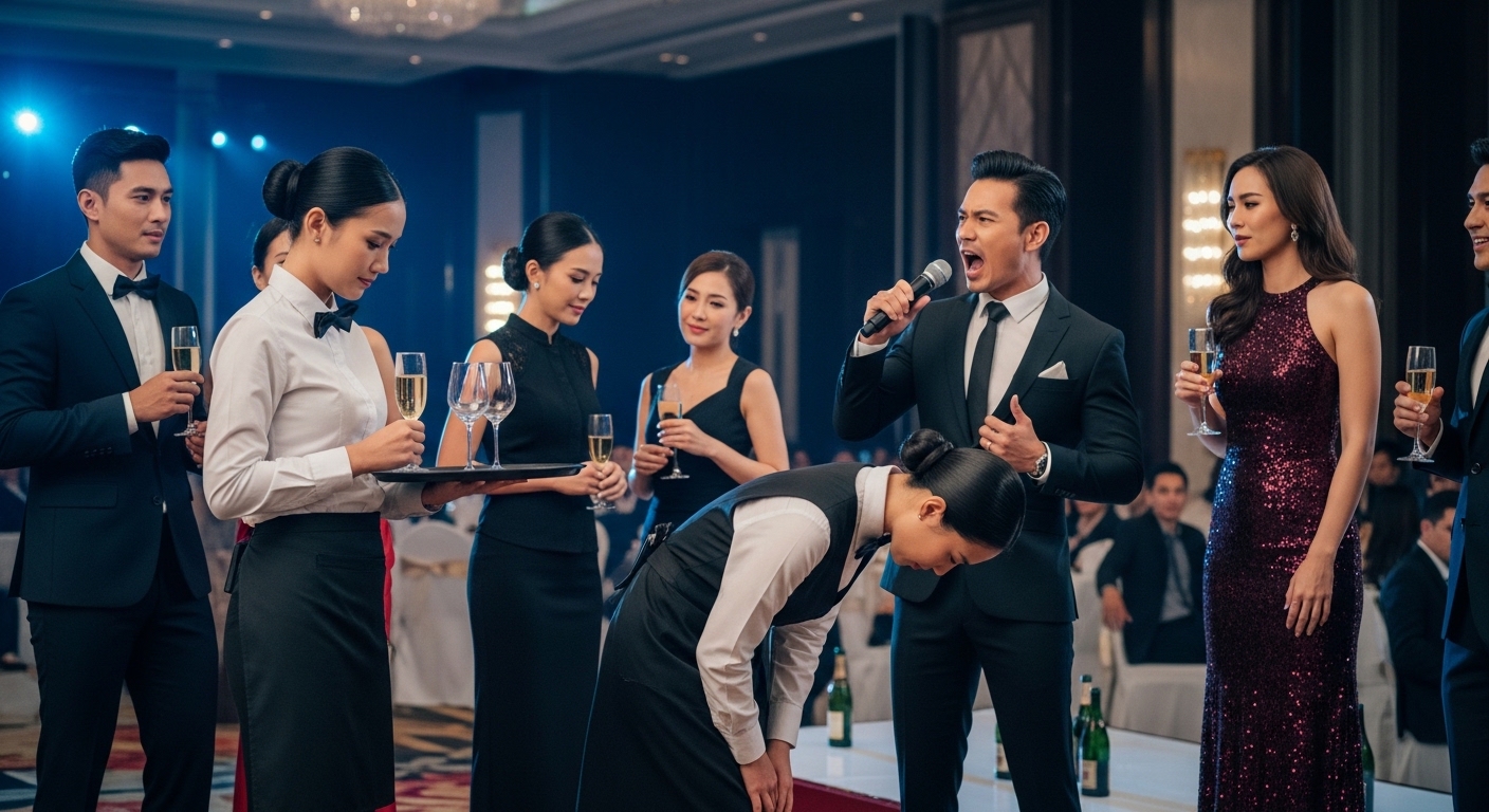 PINILIT NIYANG MAG-WAITER ANG ASAWA SA KANYANG PROMOTION PARTY AT IPINAGMALAKI ANG KABIT — PERO NATAHIMIK ANG LAHAT NANG YUMUKO ANG GLOBAL CEO SA ASAWA AT TINAWAG ITONG “MADAM CHAIRWOMAN”!