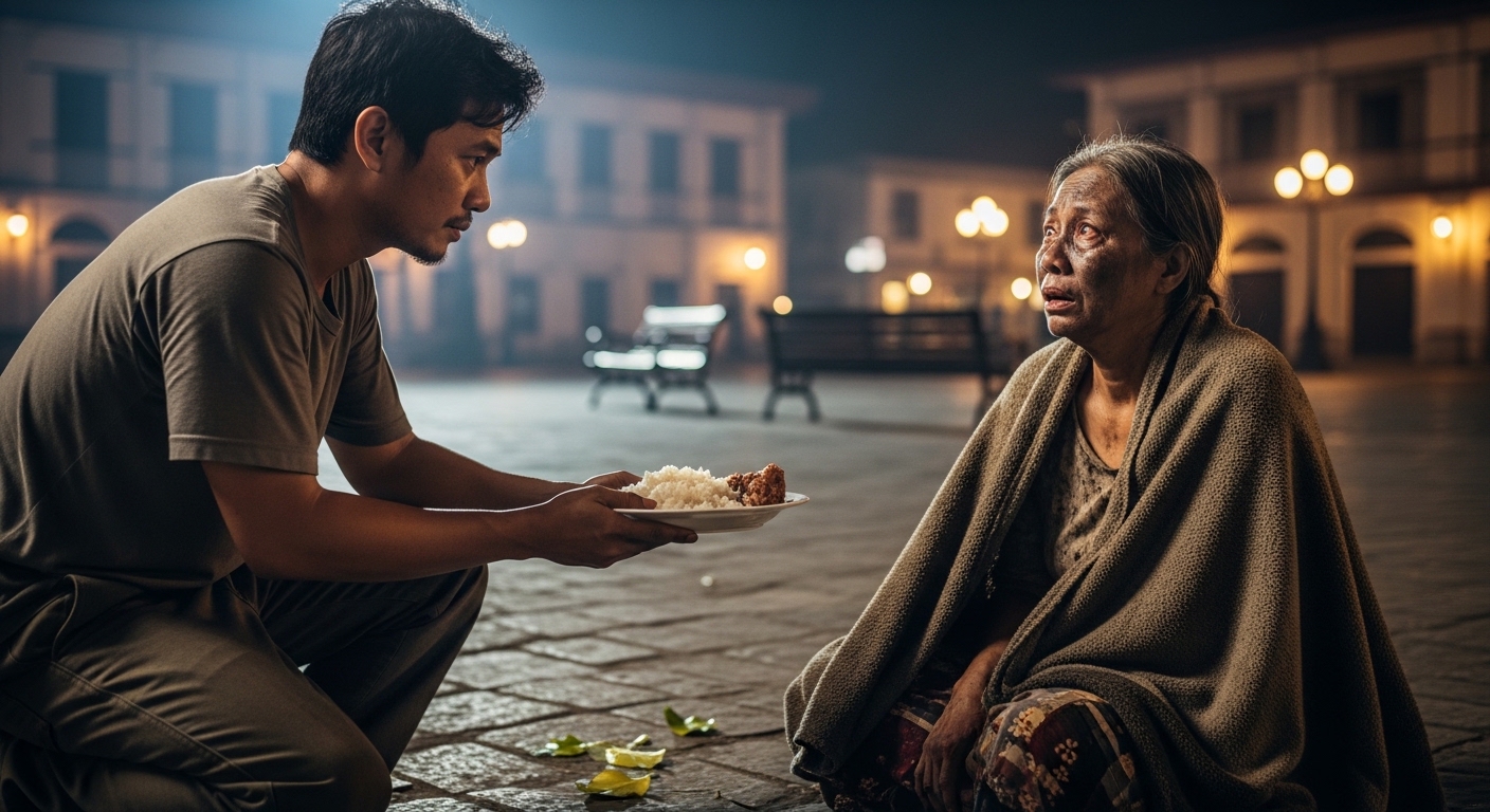 Isang gabi, habang naglalakad ako pauwi galing sa trabaho, napadaan ako sa plaza ng bayan. Doon ko nakita ang isang babaeng nakaupo sa malamig na semento, nakabalot sa maduming kumot, at nanginginig sa gutom. Ang pangalan niya ay Maya. Imbes na limos lang ang ibigay ko, dinala ko siya sa isang karinderya at pinakain. May kung ano sa malulungkot niyang mata na umabot sa puso ko.