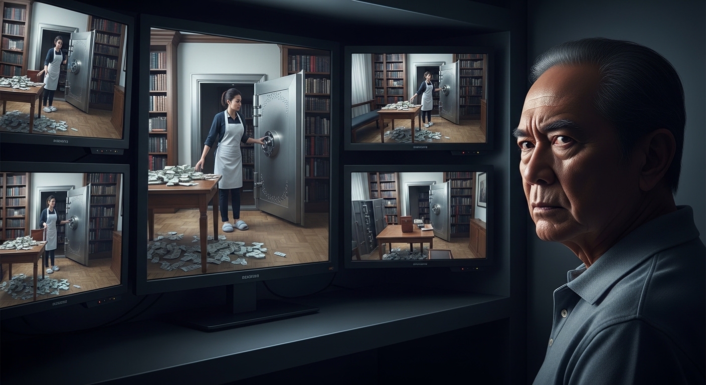 “Lahat sila, magnanakaw,” bulong niya habang tinitignan ang CCTV monitor. Pang-limang katulong na ang sinisibak niya ngayong taon dahil sa hinalang pagnanakaw.