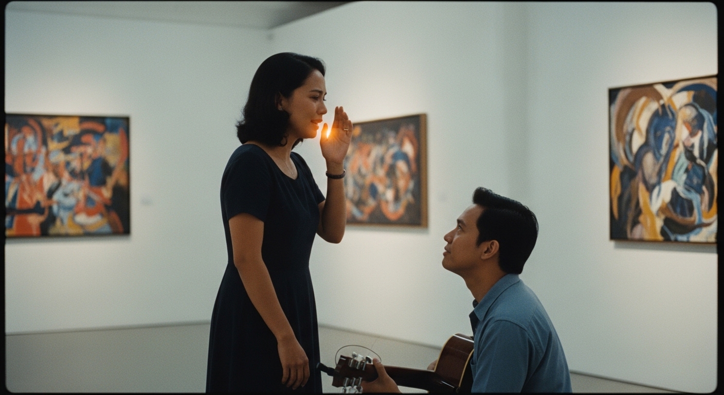Pagkatapos ng kanta, lumuhod si Ethan sa harap niya.