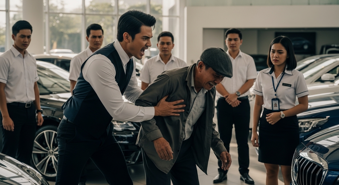 TINABOY NG SALESMAN ANG “PULUBI” PALABAS NG HAHAN — PERO NAMUTLA SIYA NANG ILABAS NG MATANDA ANG MILYONES PARA BILHIN ANG SAMPUNG KOTSE MULA SA ISANG INTERN