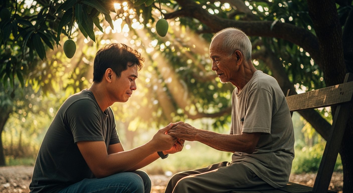 At sa ilalim ng puno ng mangga, nakita ko si Tatay — payat, nakatungo, nanginginig ang kamay.