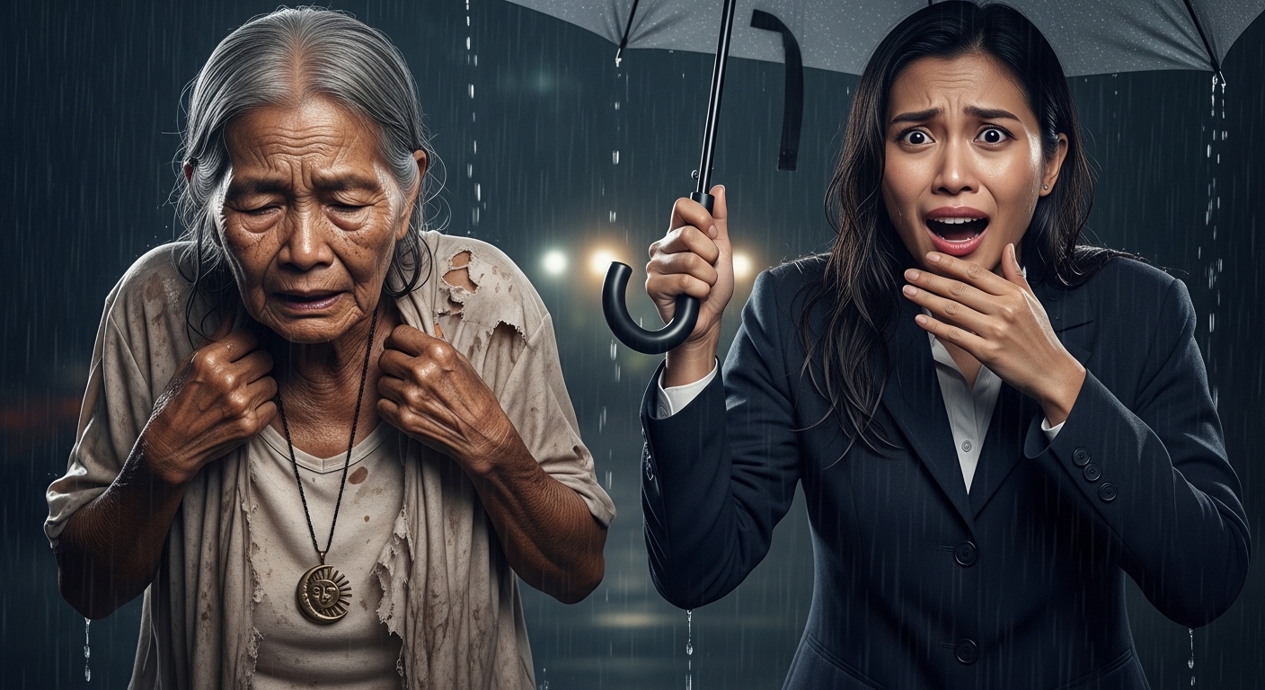 Lumapit si Elisa, walang pakialam kung mabasa ang kanyang mamahaling designer suit. Tinanggal niya ang kanyang coat at ipinatong sa balikat ng nanginginig na matanda.