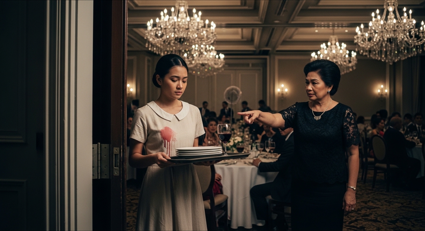 Dire-diretso si Mr. Chen at ang mga guards sa gilid ng ballroom… papunta sa pinto ng Kitchen kung saan ako nakatayo, hawak pa rin ang tray ng maruruming pinggan, at may mantsa ng wine sa damit.
