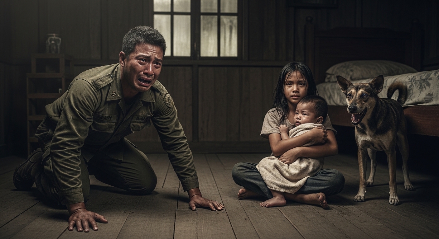 UMUWI ANG SUNDALO MULA SA GIYERA AT NAABUTAN ANG PITONG-TAONG-GULANG NIYANG ANAK NA MAG-ISANG INAALAGAAN ANG SANGGOL NITONG KAPATID — ISANG ASO NA LANG ANG NAGBABANTAY SA KANILA MATAPOS SILANG IWAN NG KANILANG MADRASTA PARA SUMAMA SA KABIT