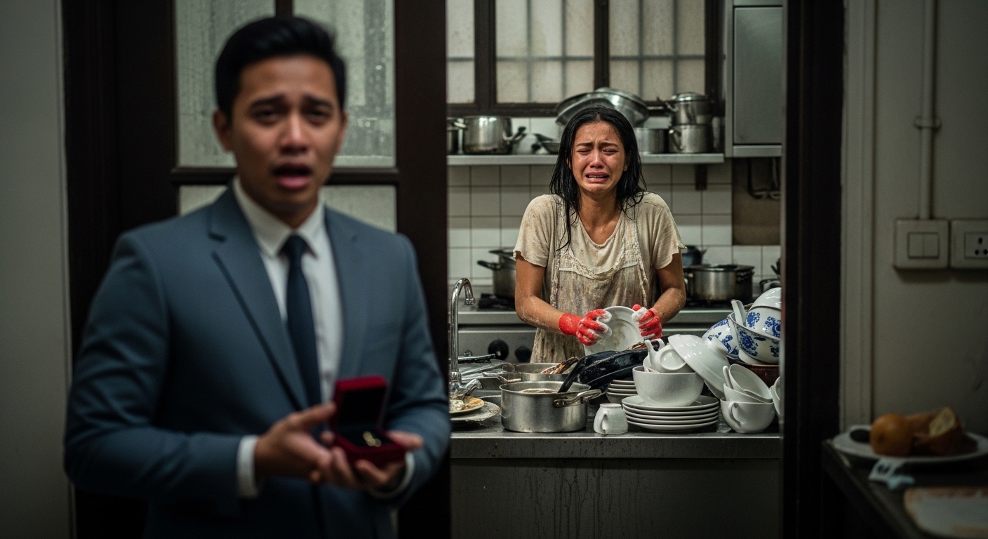 UMUWI NANG MAAGA ANG BILYONARYONG ASAWA UPANG SURPRESAHIN ANG KANYANG MISIS—NGUNIT NAABUTAN NIYANG NAGHUHUGAS ITO NG MGA PLATO TULAD NG ISANG KATULONG HABANG NAGPAPAKASARAP ANG KANYANG PAMILYA SA TAAS.